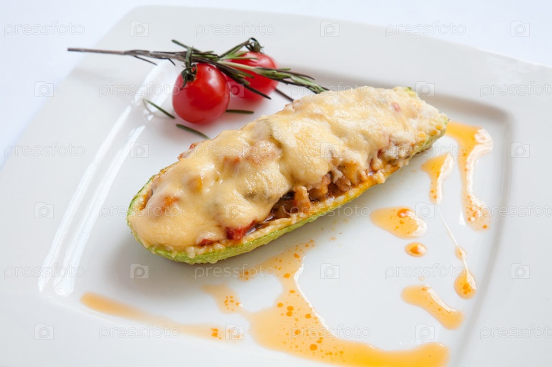 Цуккини фаршированные морепродуктами и сыром