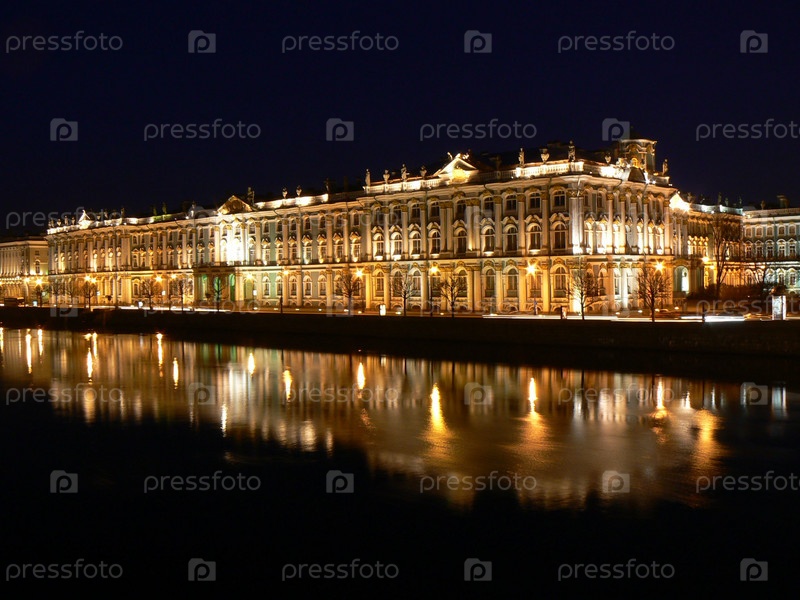 Здание Эрмитажа в ночном Санкт-Петербурге
