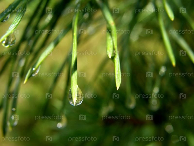 Капли на еловые иглы - Drops on spruce needles