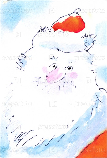 Дедушка Мороз. Акварельная открытка