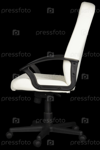 Большое офисное кожаное белое кресло на черном фоне