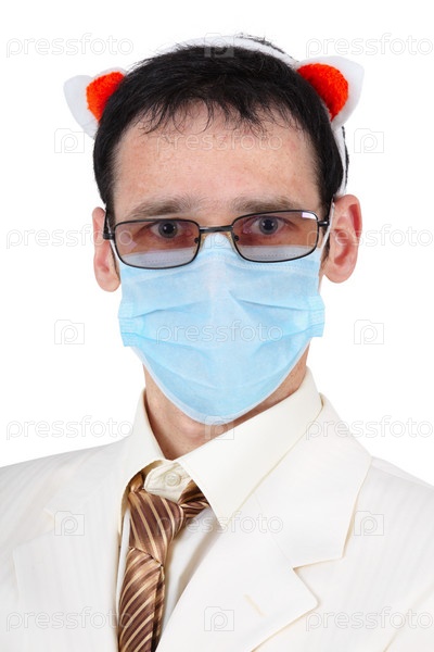 Мужчина в маске и со смешными ушками