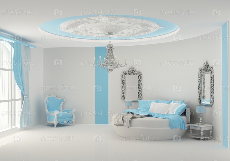 Круглая кровать в спальне, стиль барокко