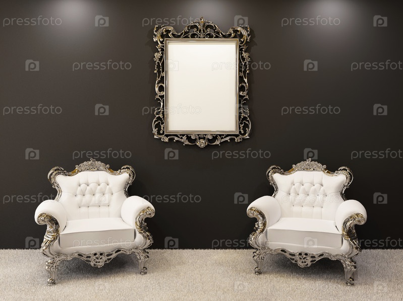 Пустая рамка и два кресла в салоне. Элитная квартира
