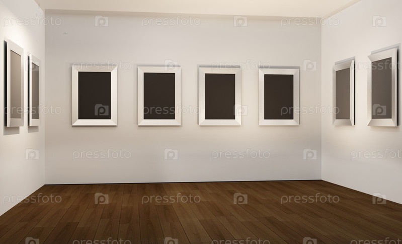 Пустые холсты на белой стене в галерее