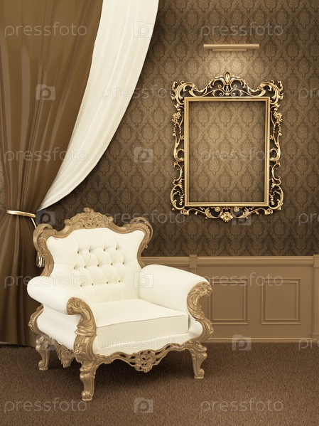 Королевские апартаменты с роскошным креслом и рамой на стене