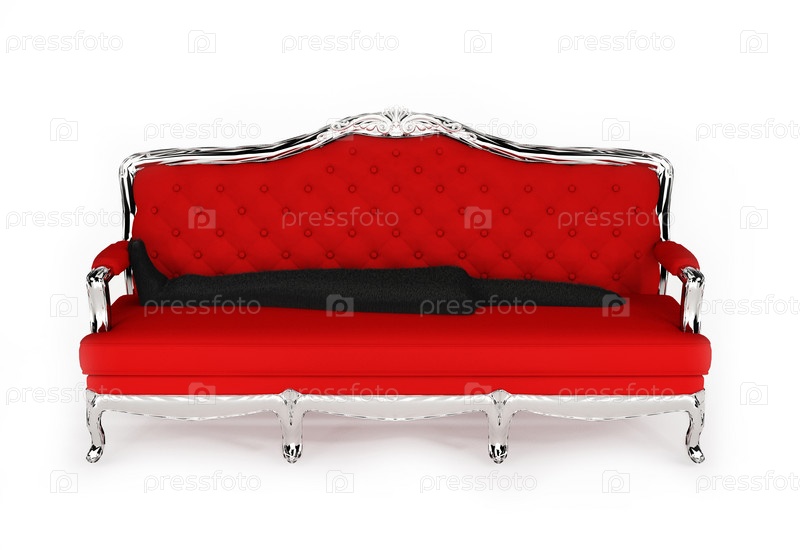 Красный диван с черной тканью на белом фоне