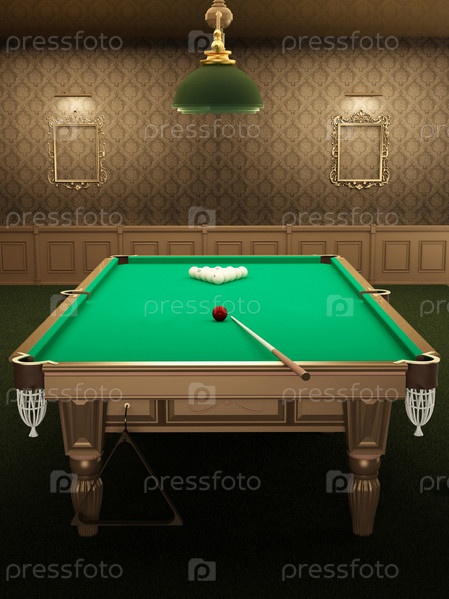 Бильярдный стол в роскошном интерьере зала