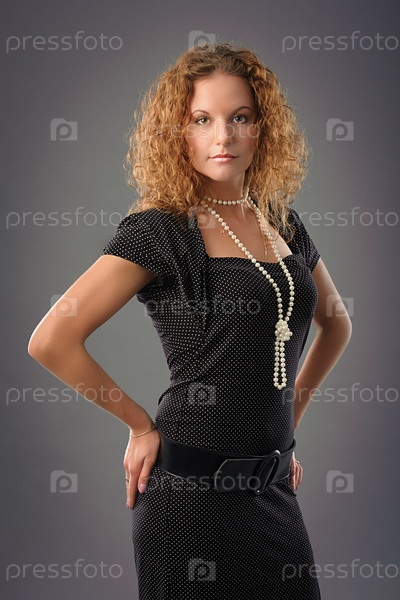 Красивая девушка в платье в черный горошек