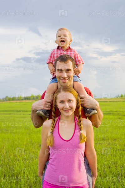 Портрет счастливой семьи на природе