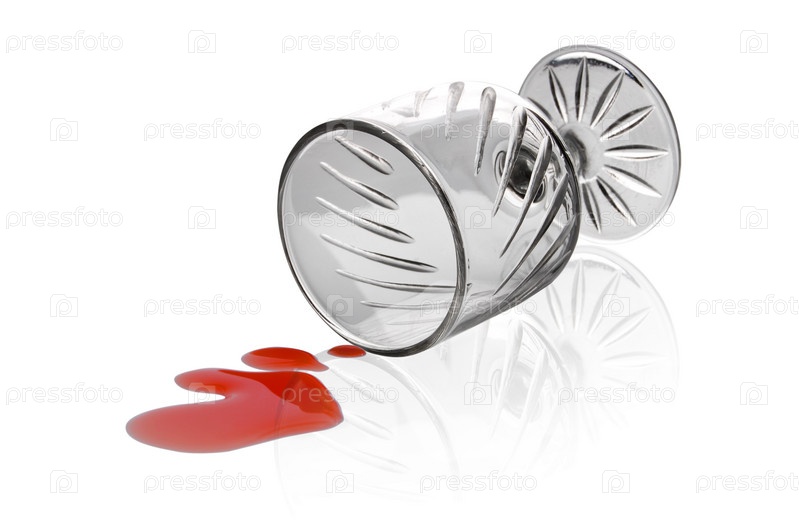 Кровь, пролившаяся из рюмки, изолировано на белом фоне