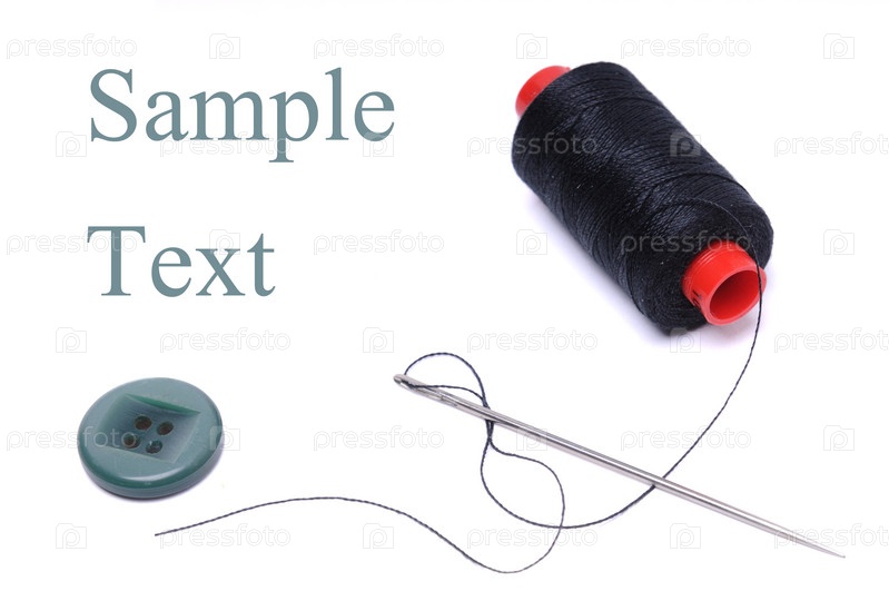 Катушка ниток и игла, изолировано на белом фоне