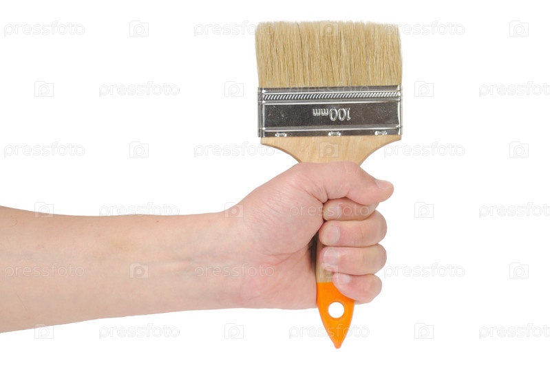 Молярная кисть в руке на белом фоне