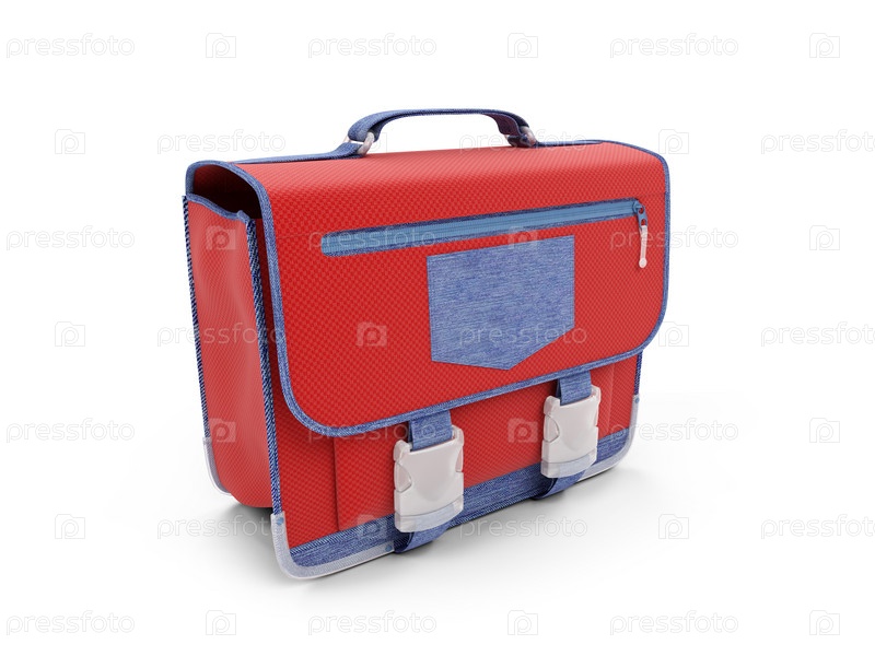 Школьный красный рюкзак на белом фоне