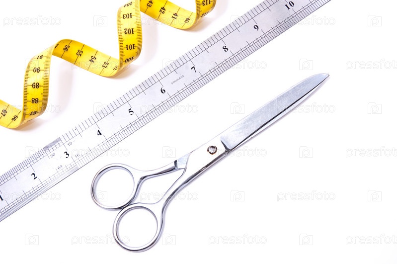 Желтый сантиметр, линейка и ножницы