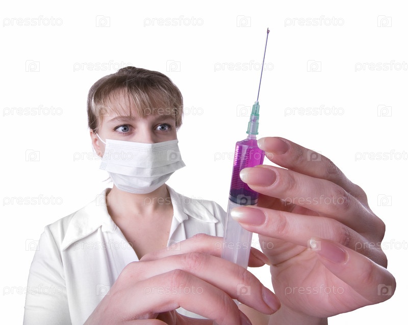 Женщина-врач в маске со шприцем в руках