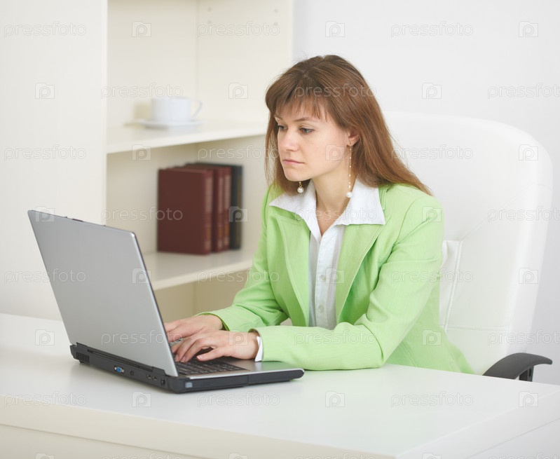 Девушка секретарь за ноутбуком в офисе