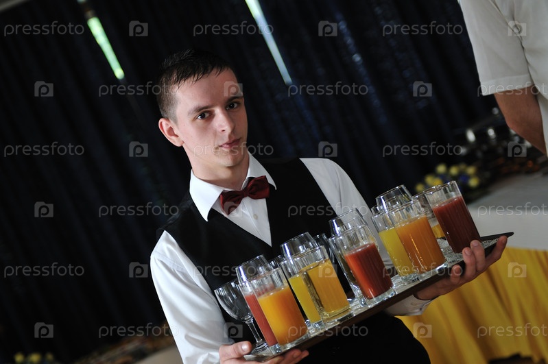 Официант с напитками на подносе