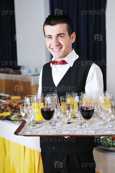 Официант с напитками на подносе