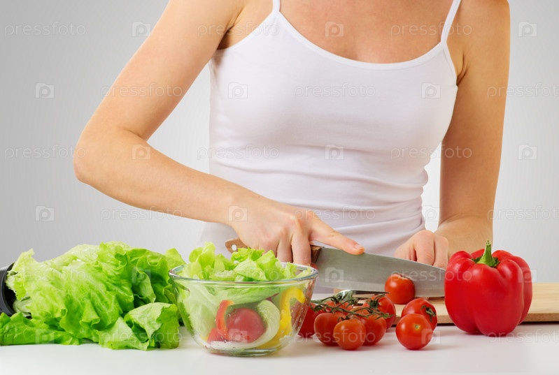 Женщина режет овощи