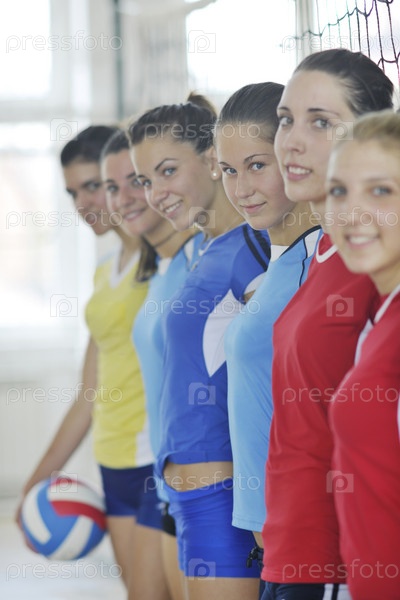 Девушки-волейболистки на спортивной площадке