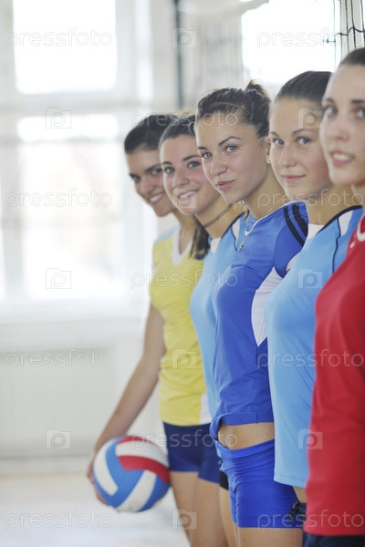 Девушки-волейболистки на спортивной площадке