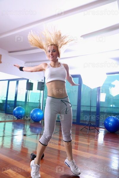 Красивая девушка прыгает в фитнес-клубе