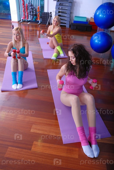 Красивые девушки занимаются в фитнес-клубе