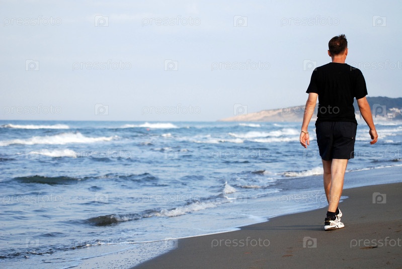 Мужчина идет по пляжу