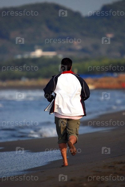 Мужчина бежит по пляжу