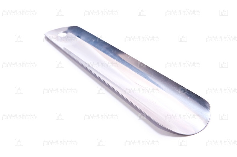 Стальная ложка для обуви на белом фоне