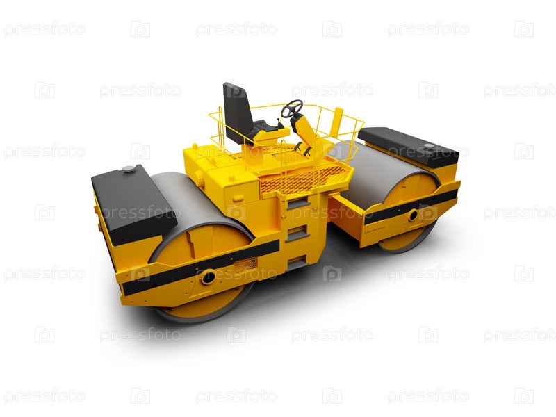 Каток для укатывания асфальта на белом фоне
