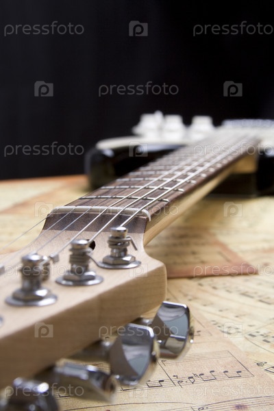 Електро гитара лежит на нотах