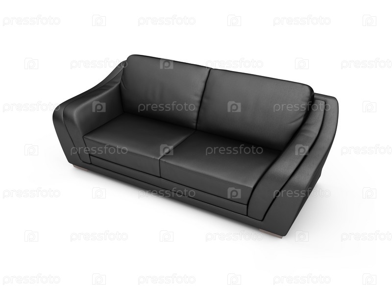 Кожаный черный диван на белом фоне