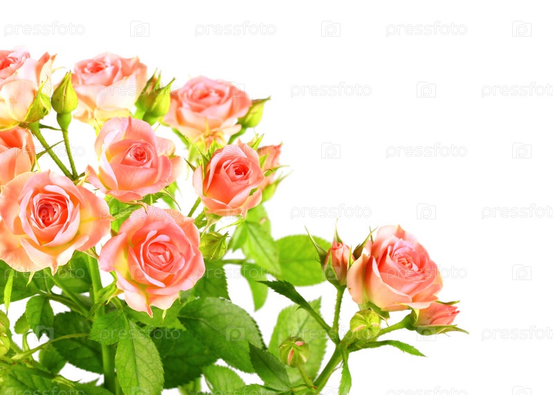 Куст розовых роз на белом фоне