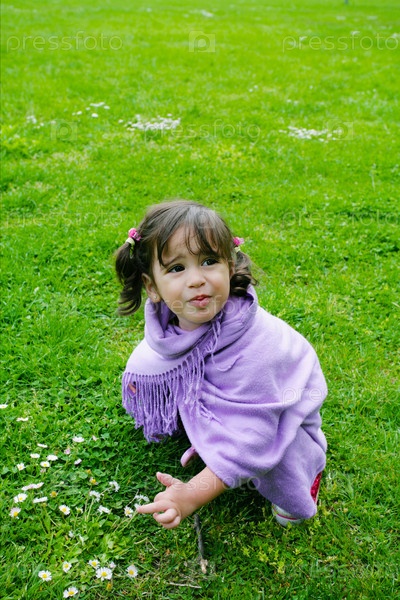 Маленькая девочка сидит на газоне