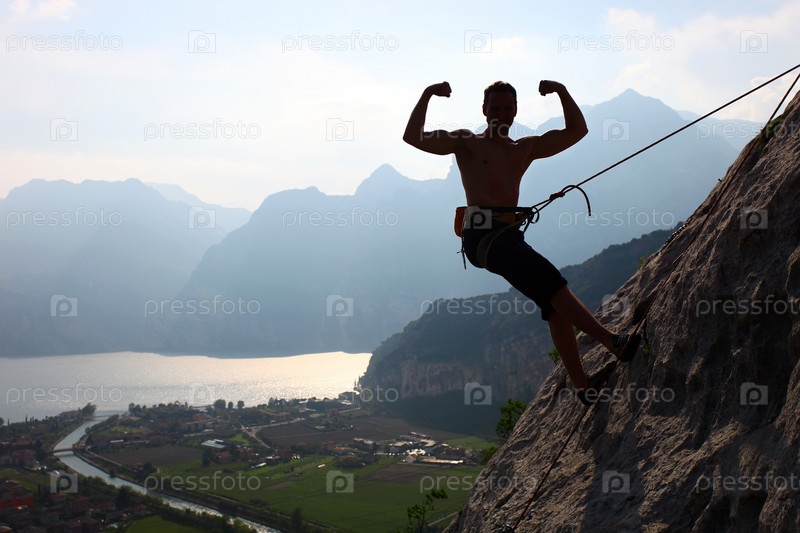 Силуэт скалолаза, показывающего мускулы. Арко, Северная Италия