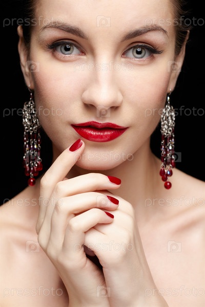Портрет молодой красивой женщины на черном фоне