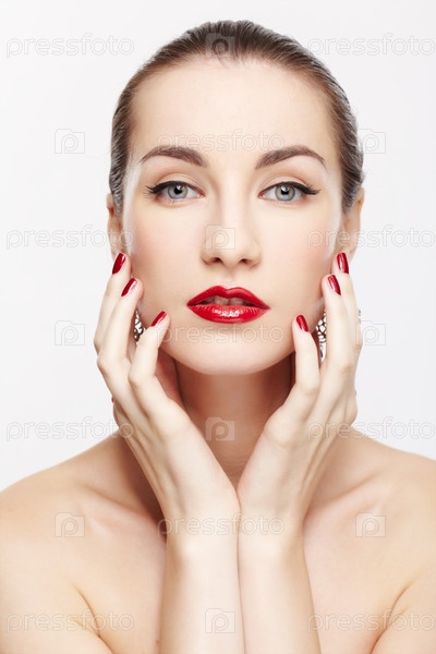 Портрет молодой красивой женщины на белом фоне