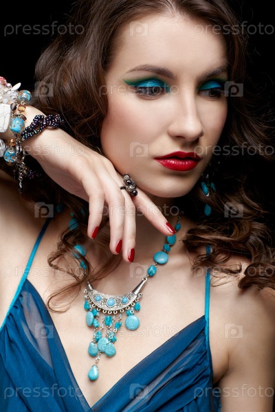 Портрет молодой красивой брюнетки в ювелирных украшениях