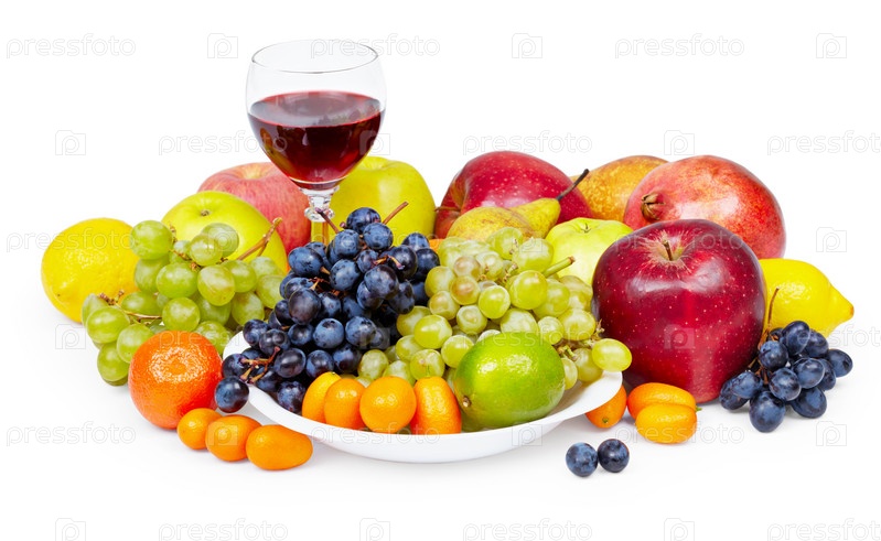 Бокал красного вина в окружении фруктов