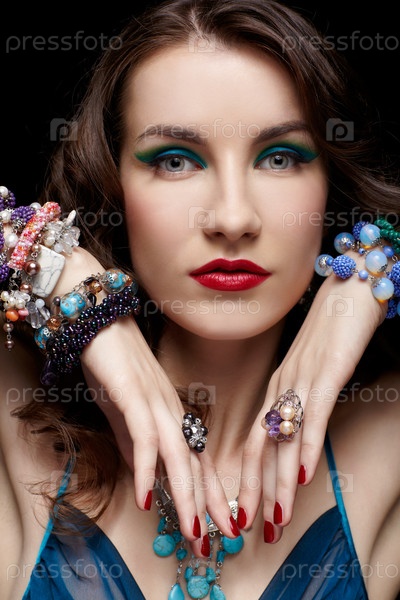 Портрет молодой красивой брюнетки в ювелирных украшениях
