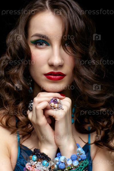 Портрет молодой красивой брюнетки в ювелирных украшениях