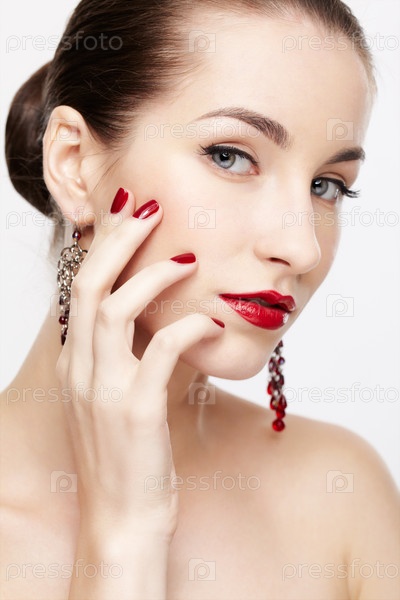 Красивая брюнетка с дорогими украшениями на белом фоне