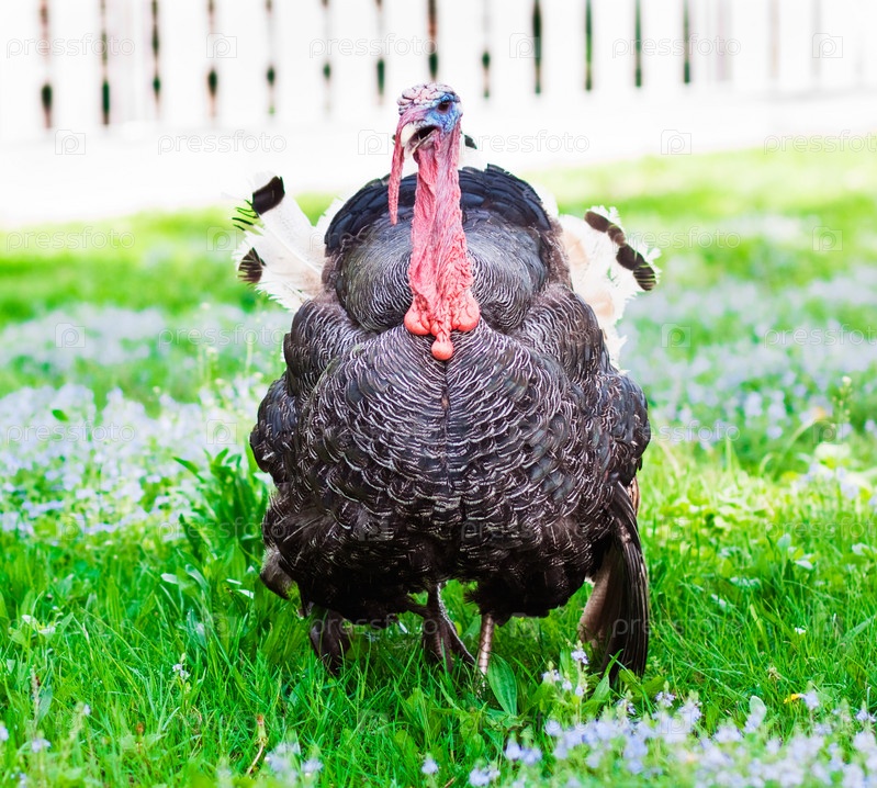 Индюк на зеленой траве