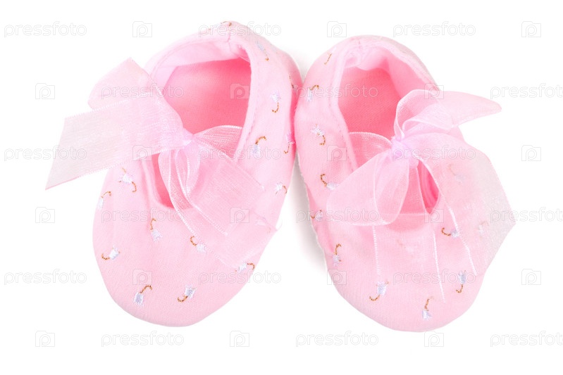 Розовые пинетки на белом фоне