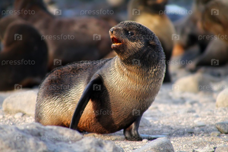 Молодая самка морского котика на лежбище. Командорские острова