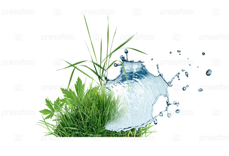 Зеленая трава и брызги воды