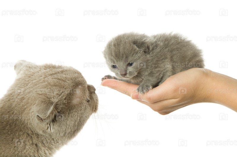 Мать-кошка и маленький котенок