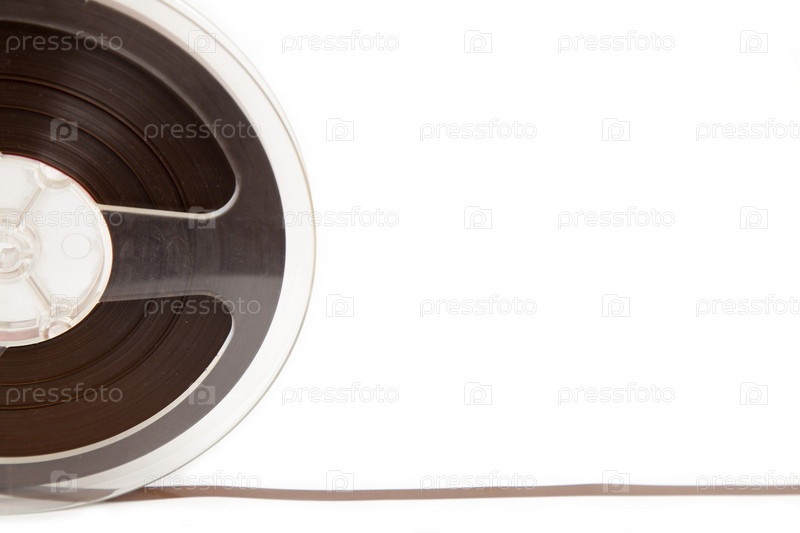Катушка с магнитной лентой на белом фоне